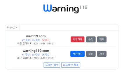 (도메인 차단 여부 검색 | 차단시 자동 알람 | 워닝차단해제관리)
